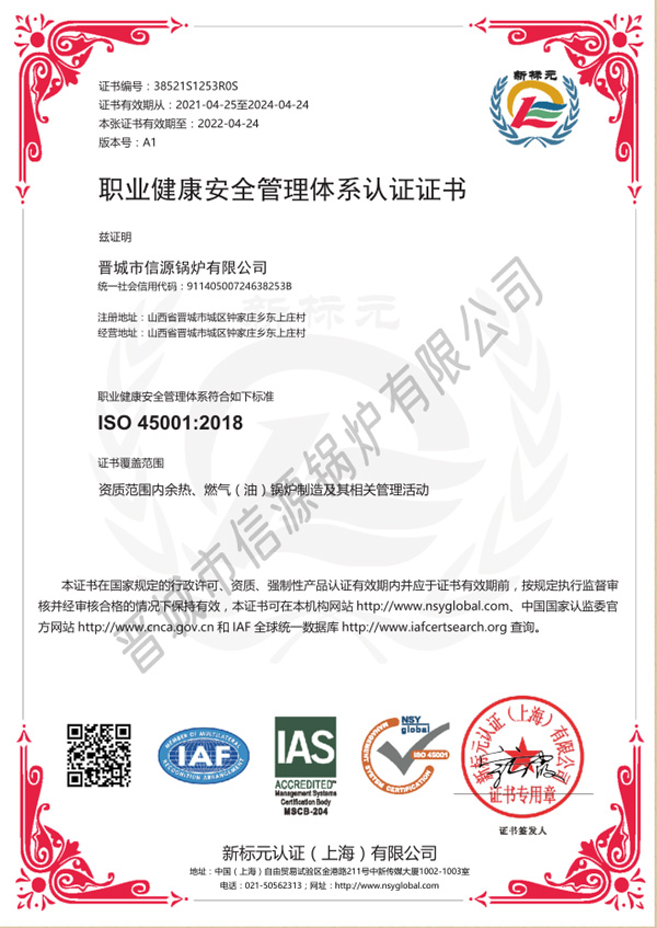職業(yè)健康安全管理體系認證證書